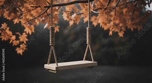 Autumnal Swing Hanging Beneath Orange Leaves with Dark, Moody Background