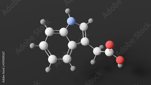 auxin molecule, molecular structure, indole-3-acetic acid, ball and stick 3d model, structural chemical formula with colored atoms