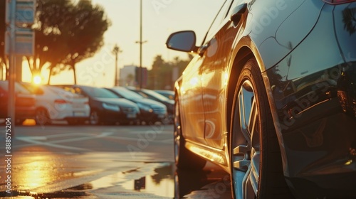 Available car for sale or rental in outdoor parking lot on a sunny day