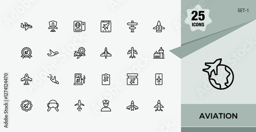 Aviation Services icon pack. Icons travel, airplane, ticket, landing, airport, tourism and more. Collection for mobile and web apps. Editable stroke. Vector illustration.