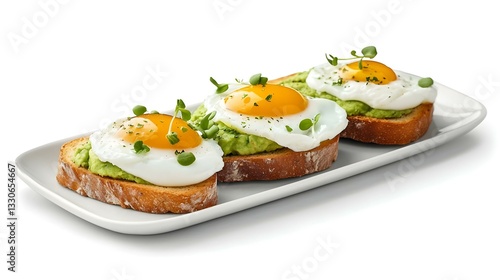 Avocado toast with poached egg on white
