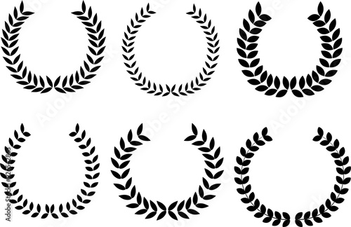 Award laurel wreath set. Leaves victory frame. Floral branch border. Champion winner branch logo. Vector illustration isolated on white background.