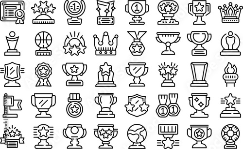 Award trophy icons set outline vector. Goblet cup. Winner victory