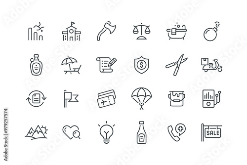 Ax axe hatchet tool, Balance finance money, set of icons for web design, vector illustration