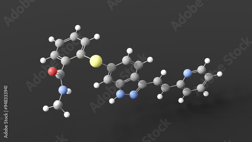 axitinib molecule 3d, molecular structure, ball and stick model, structural chemical formula antineoplastic agents