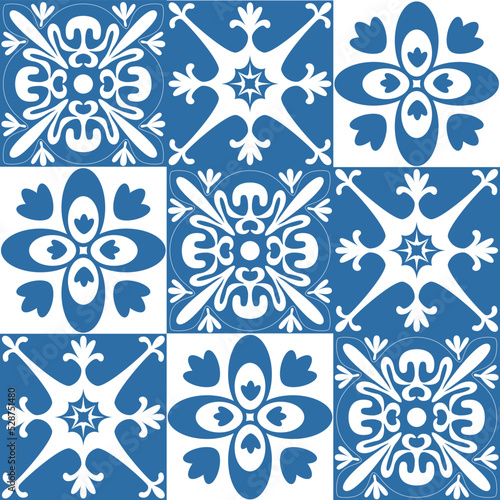 Azulejo tile seamless pattern for decor, vector illustration traditional spanish portuguese pattern for design