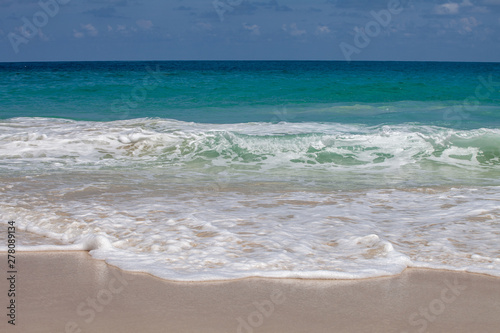 azure sea with waves on a sandy beach