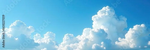 Azure sky, fluffy cumulus clouds dominate negative space, scenery, clear