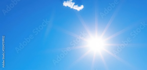 Azure summer sky, vibrant sun radiating intense light, atmosphere, background, cloudless