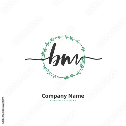 B M BM Initial handwriting and signature logo design with circle. Beautyful design handwritten logo for fashion, team, wedding, luxury logo.