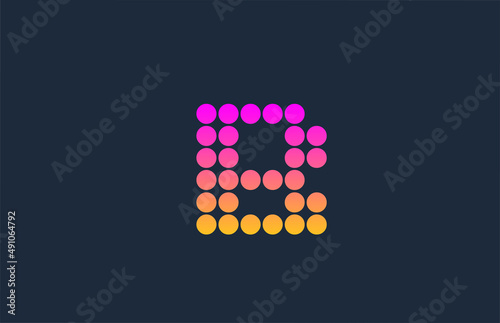 B pink yellow dotted alphabet letter logo icon design. Creative template for business and company