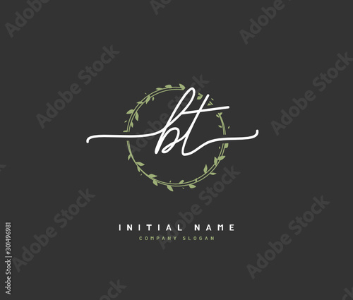 B T BT Beauty vector initial logo, handwriting logo of initial signature, wedding, fashion, jewerly, boutique, floral and botanical with creative template for any company or business.