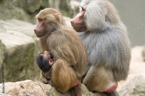 Baboon Family with a female breastfeeding her baby