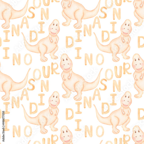 Baby Dino pattern, Watercolor Kids beige dinosaur paper, Cute T-rex seamless pattern, Stegosaurus Boy dinosaur repeat lpaper, Safari Animal Print, children textile