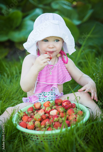 Baby eating strawberries