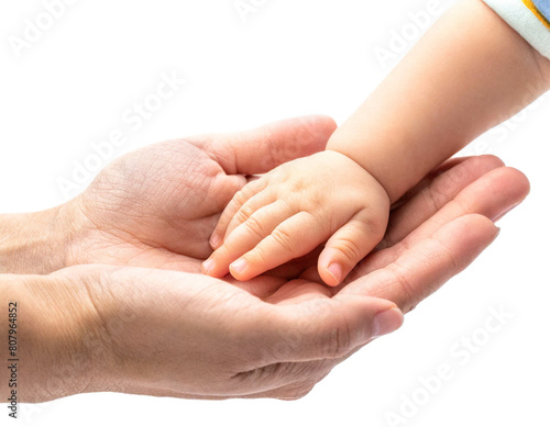 Baby händchen auf erwachsen hand isoliert auf weißen Hintergrund, Freisteller