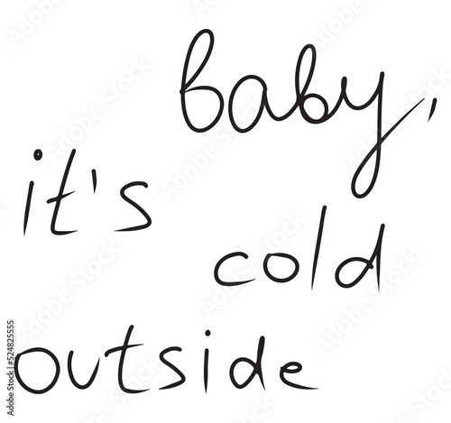 Baby its cold outside simple doodle hand written text in black isolated on white background. Winter concept, january, december, february. Traditional song. HAppy new year