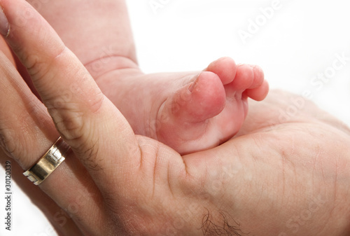 Baby leg in father's hand