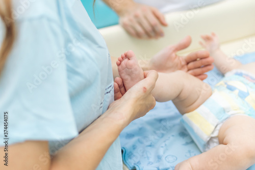 Baby massage, close up shot. Child massage, newborn.