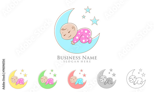 baby moon logo, cute baby sleep vector logo design