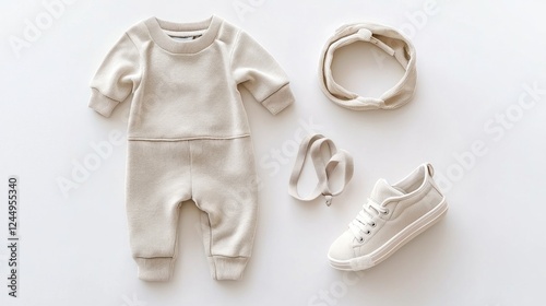Baby Outfit Neutral Tones Jumpsuit Headband Shoes