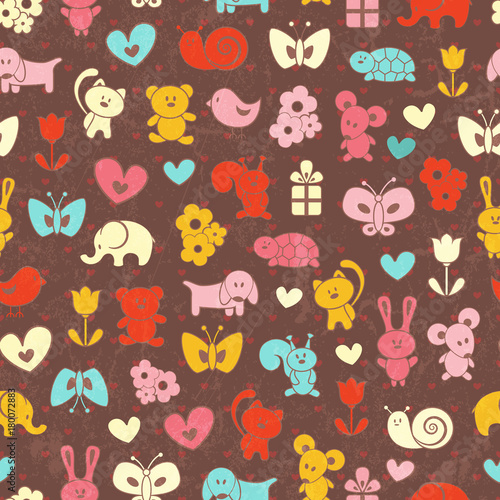 Baby seamless wallpaper on brown backdrop. EPS 10 vector illustration.