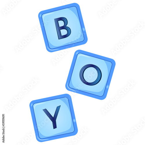 Baby shower blue cubes, it's a boy letters. Vector illustrations for invitations, greeting cards, posters