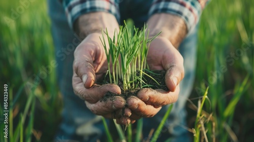 Baby sprout plan of crops in the hand of farmer.