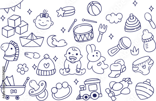 Baby Toy Outline Vector | Bunny, Ball, Bear, Book, TV, Duck, Musical Instruments