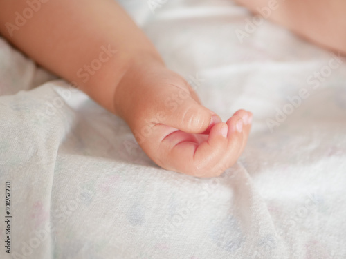 Babys hand. Close-up. A place to write. Placing text. defocusing.