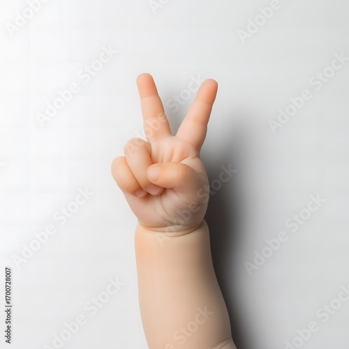 Baby's Victory Gesture: A tender hand from a baby forms the universally recognized peace sign, showcasing a symbol of innocence and triumph.