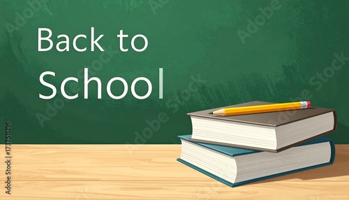 Back to School Chalkboard with Books and Pencil