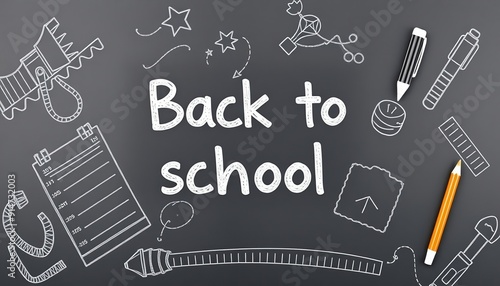 Back To School Chalkboard With Supplies.