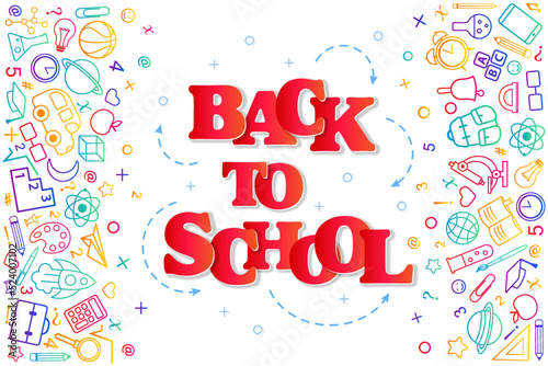 Back to school conceptual background with line art icons and sti