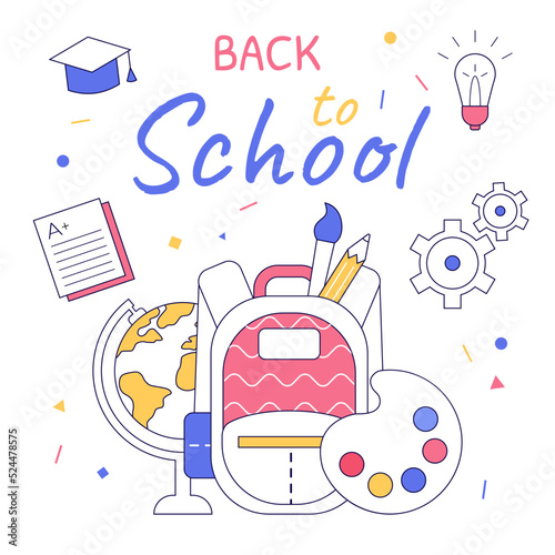 Back to school design with school supplies composition. Set of school stuff. Vector line art.