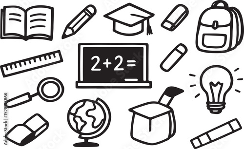 Back to school doodle seamless pattern. Hand drawn background with school supplies and creative elements. Vector illustration. Eps 10