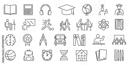 Back to school. linear icons set. Education linear symbols.