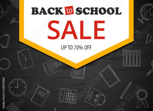 Back to school sale colorful banner on grey background