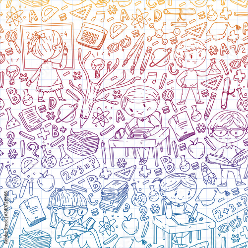 Back to school. Vector icons and elements for little children, college. Doodle style, kids drawing