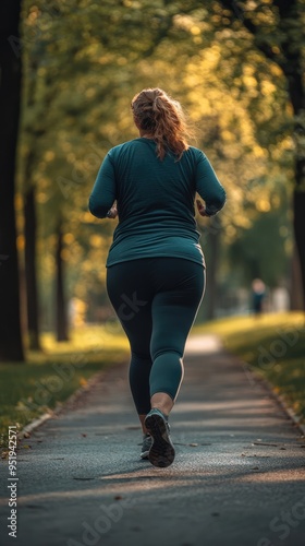Back View of a Beautiful Plus Size Woman Beginning a Run