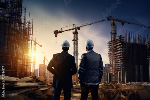 Back view of civil engineer checking work in the construction site.
