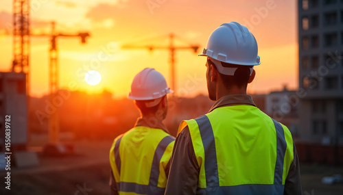 Back view of engineer in safety clothes, hardhat looks at petroleum plant. Inspector at chemical, hydrogen industrial zone. Crude oil refinery, gas, energy, fuel production, steel processing area.