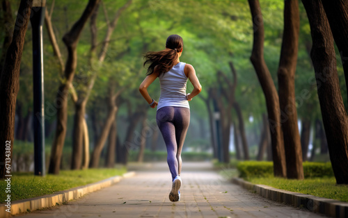 Back view of jogger in the park,created with Generative AI tecnology.