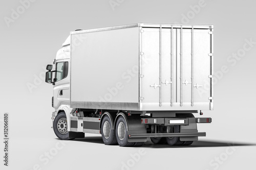 Back View Of White Truck With Empty Space On Refrigerator For Long Haul Delivery. 3d rendering