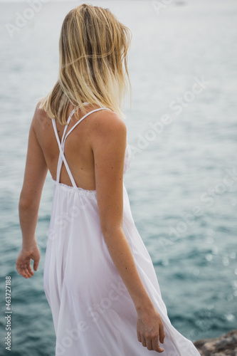 Back View Of Young Blonde Woman By The Sea