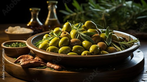 backgroud of fresh green olives in a plate