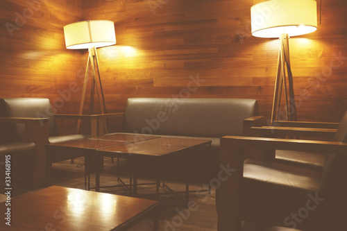 Background blurred couter coffee bar cafe, cafe blurred background with bokeh