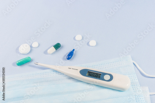 Background concept for news about the novel coronavirus COVID-19 pandemic, antiviral medical mask for protection against coronavirus. Surgical protective mask. Medical respiratory bandage face