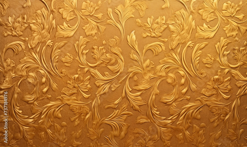 background embossed floral embossing on gold, voluminous wallpaper oriental ornament