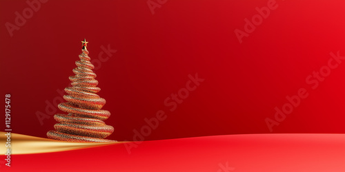 Background featuring minimal golden Christmas tree on subtle red background